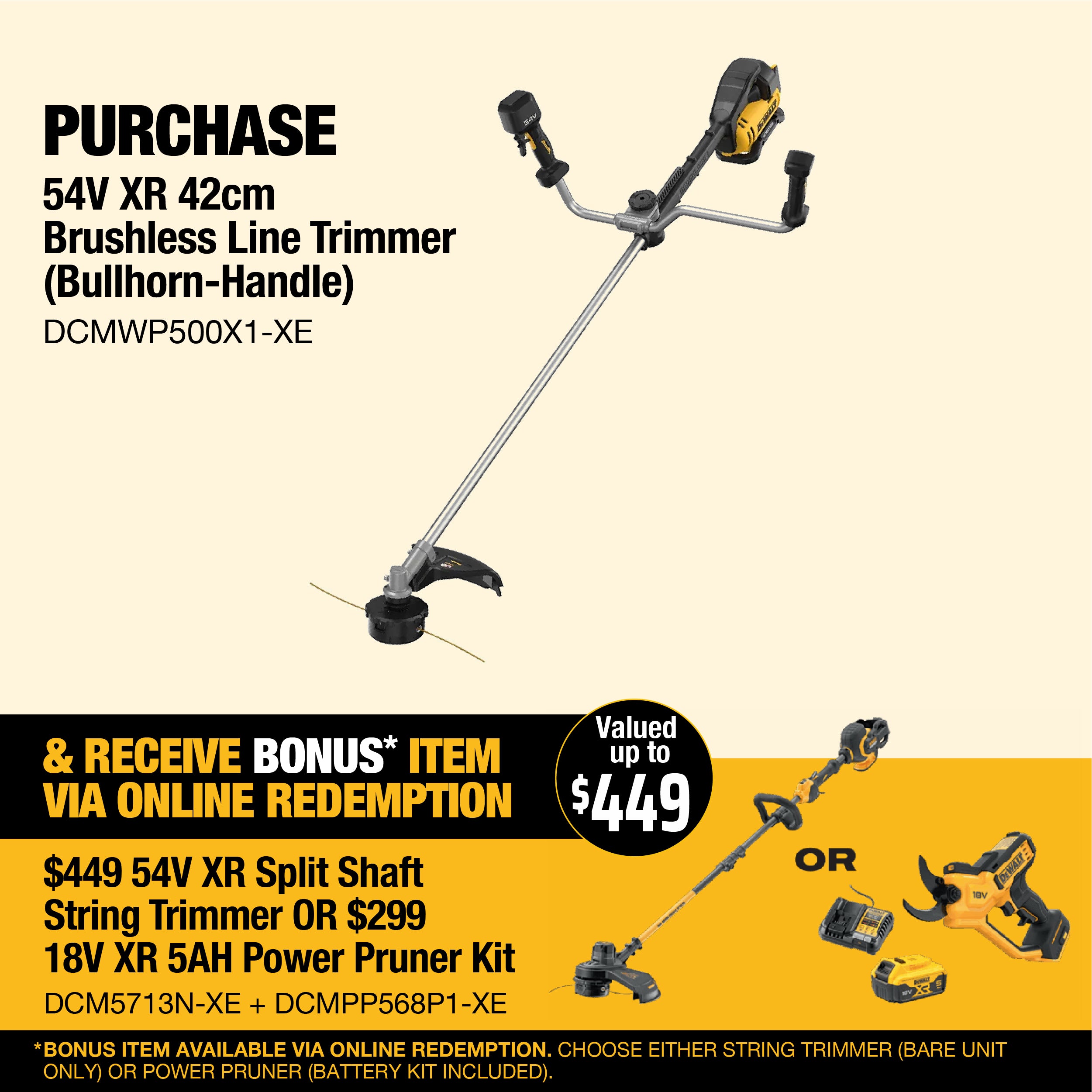 - 1 x DCMST911 54V Line Trimmer D-Handle (Bare Unit)