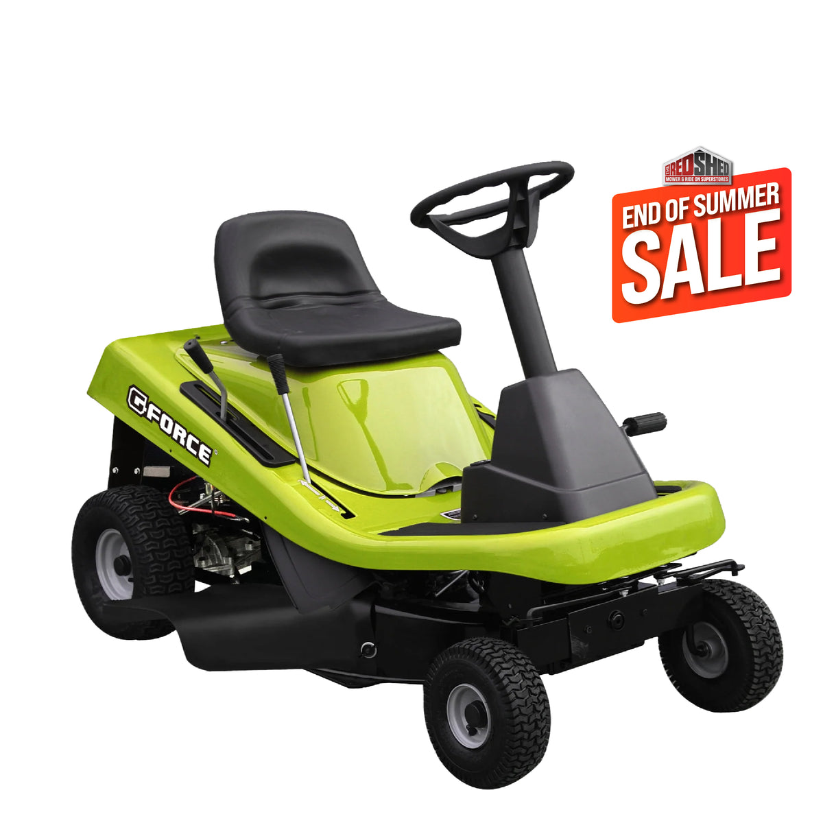 The G-Force GLR-30H Ride-On Mower is covered by a 2-year parts and labour engine warranty and 1 year for the belt, battery, cutting deck and chassis.