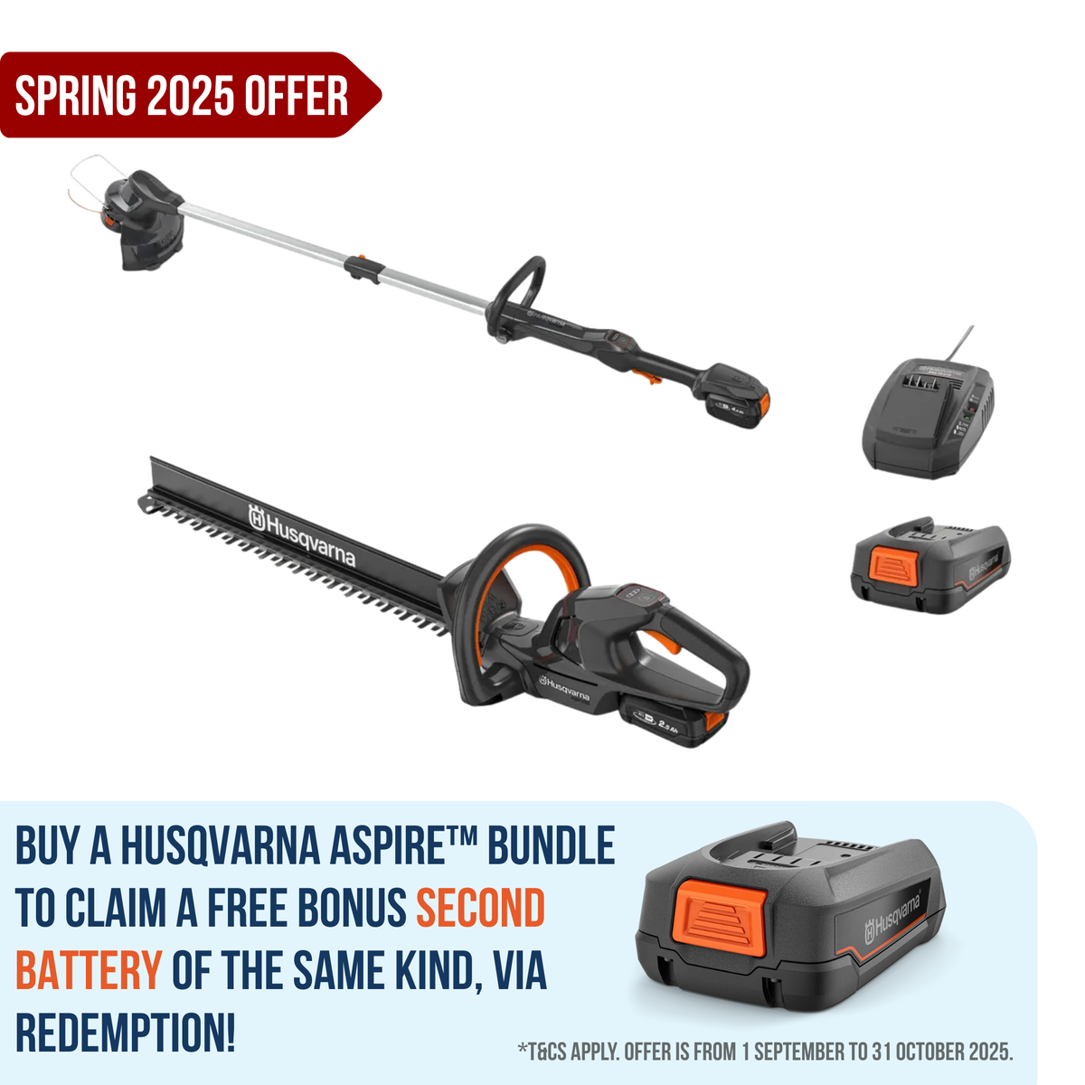 Husqvarna Aspire™ Grass Trimmer + Hedge Trimmer Bundle - With 2.5Ah Battery and Charger