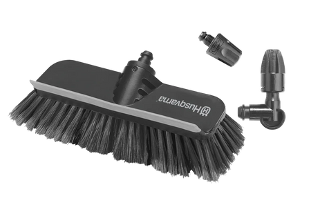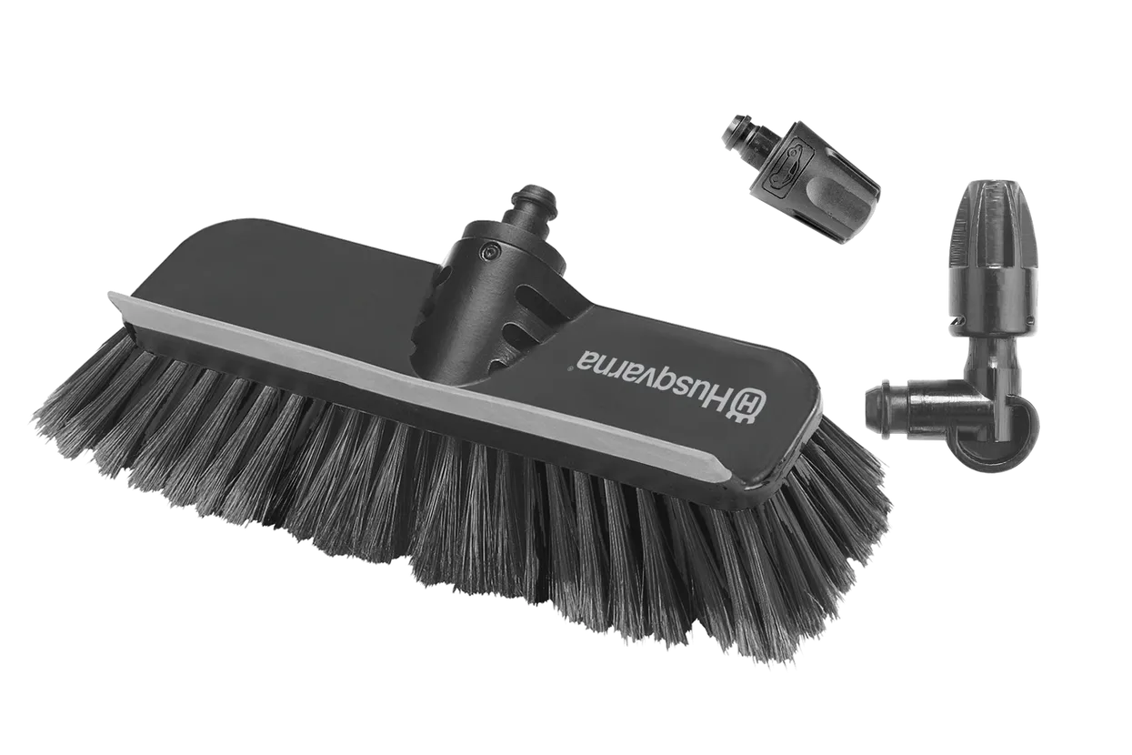 The Vehicle Kit contains of a wide fan jet nozzle for a quick and gentle cleaning of sensitive surfaces, an angled nozzle for hard-to-reach areas, and a wash brush with a squeegee.