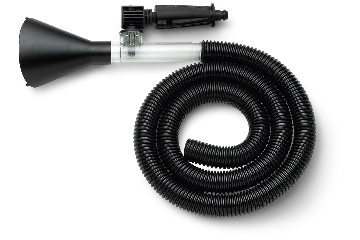 The Water Suction Nozzles turn your high pressure washer into a pump for removal of large amounts of water that has difficulties draining away. Perfect when for example emptying ponds or drying up the patio.